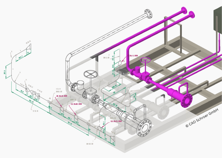 Unser Engineering erfolgt in enger Zusammenarbeit mit erfahrenen Partnerunternehmen, die auf Prozessdesign, Prozessoptimierung und die Erstellung von Isometrien spezialisiert sind. Dabei kommen moderne 2D- und 3D-Konstruktionsprogramme zum Einsatz – ideal für den Rohrleitungs-, Anlagen- sowie Hallen- und Fabrikbau.